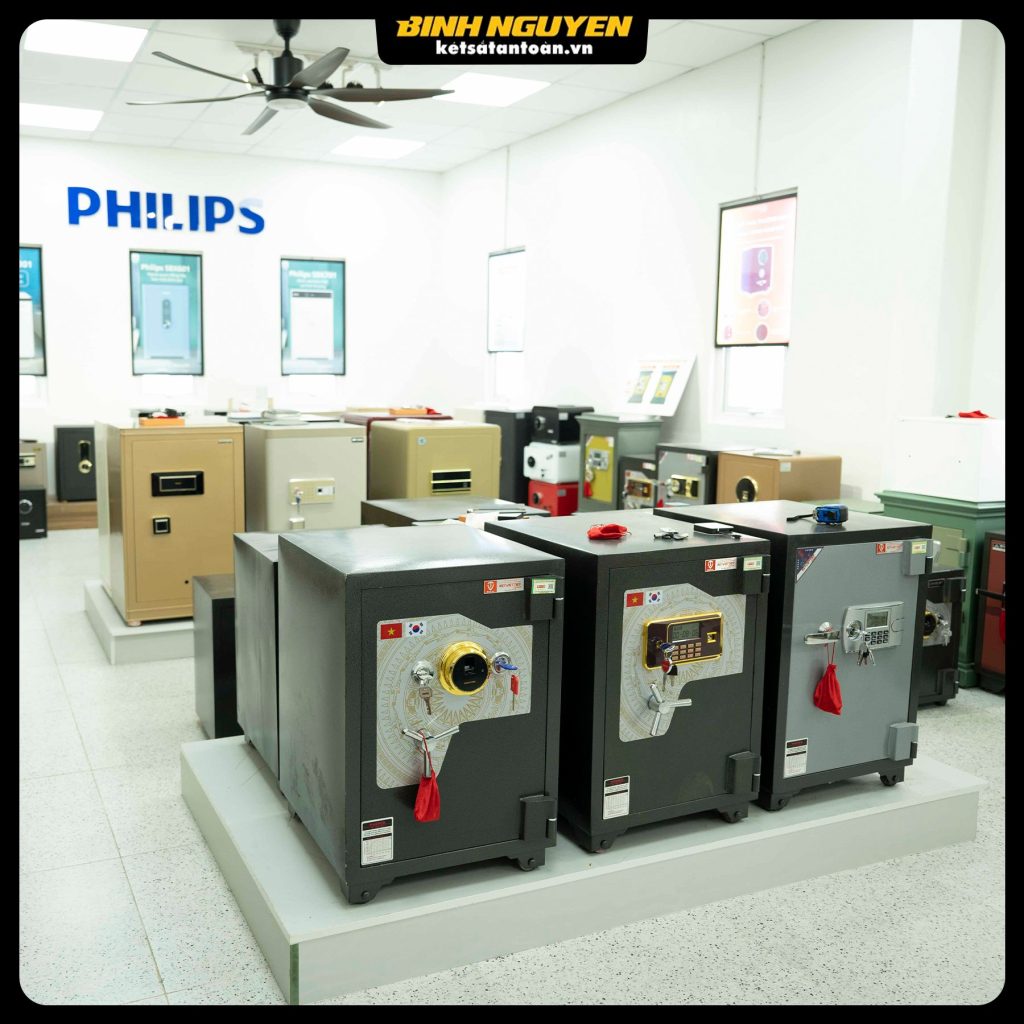 Tại đây bạn có thể tham khảo và lựa chọn mọi dòng két sắt dành cho gia đình, cơ quan, công ty, két sắt hòm công đức các đơn vị từ thiện, đình chùa,… với đa dạng kích thước từ mini, cỡ vừa đến cỡ lớn. Quy mô showroom rộng lớn, giúp bạn thoải mái xem xét kỹ lưỡng và chọn loại két sắt khóa cơ, khóa vân tay, khóa điện tử,… theo nhu cầu, đảm bảo sự tiện lợi nhất.