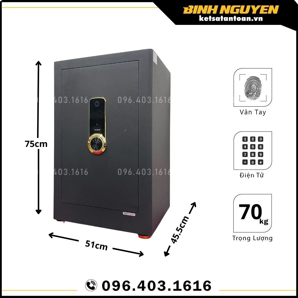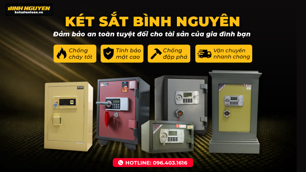Quý khách muốn sở hữu một chiếc két sắt điện tử với khả năng chống cháy, chống trộm nổi bật, hãy liên hệ ngay cho Két sắt Bình Nguyên qua Hotline/Zalo: 096.403.1616 để được báo giá két sắt điện tử chính xác nhất. Hoặc đặt mua trực tiếp mẫu sản phẩm tại Website: ketsatantoan.vn.