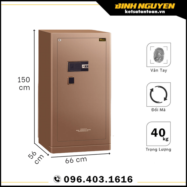 - Bảo mật an toàn: Chiếc két có sự kết hợp của mã số điện tử và bảo mật vân tay hiện đại, tạo ra sự thuận tiện và an toàn tối đa cho người tiêu dùng.