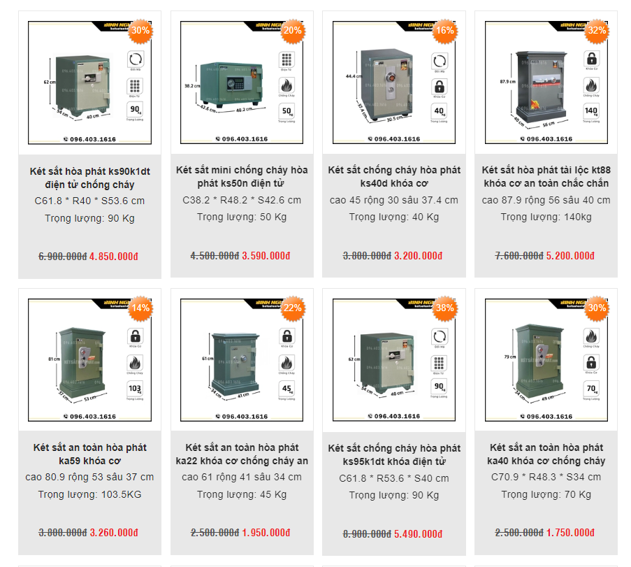 - Két sắt điện tử: Tính năng bảo mật cực cao, có khả năng ẩn mã số khi sử dụng, tránh tình trạng bị lộ mật khẩu. Đa dạng chủng loại, kiểu dáng, đáp ứng nhu cầu sử dụng của mọi phân khúc khách hàng.