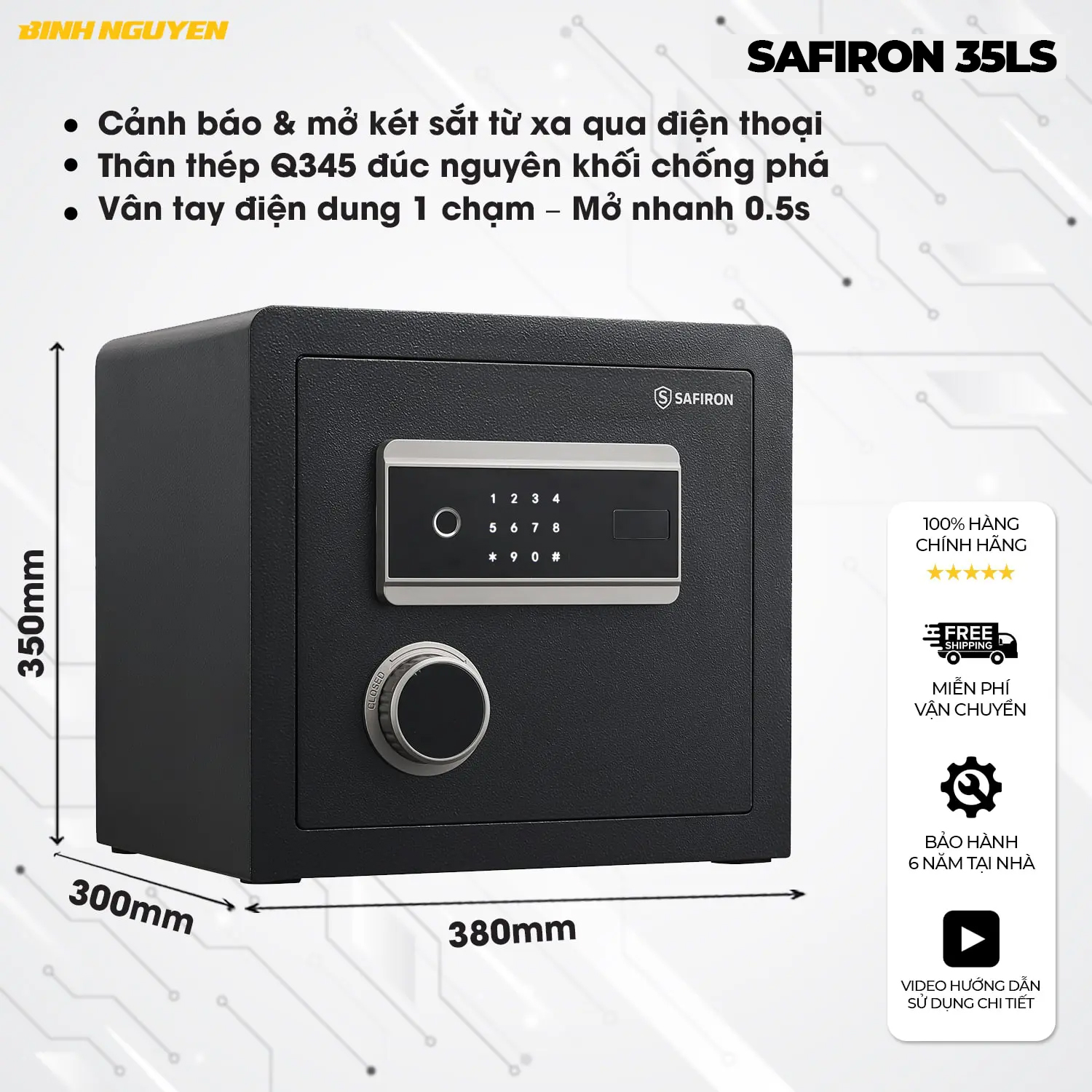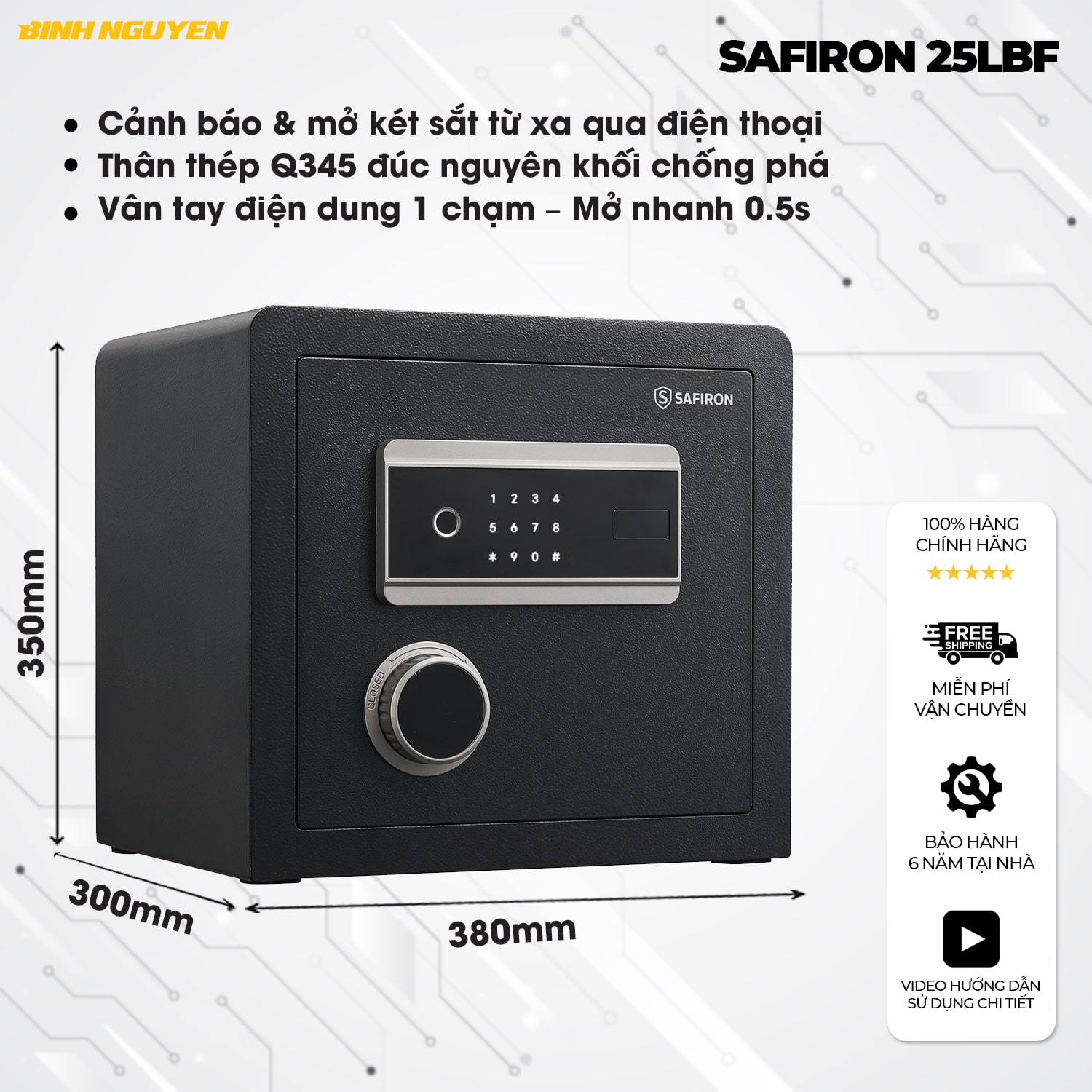 01 Két sắt Safiron 35LS chính hãng – sản xuất theo tiêu chuẩn chất lượng quốc tế, thân thép Q345 đúc liền khối, khóa vân tay điện tử cảm ứng.