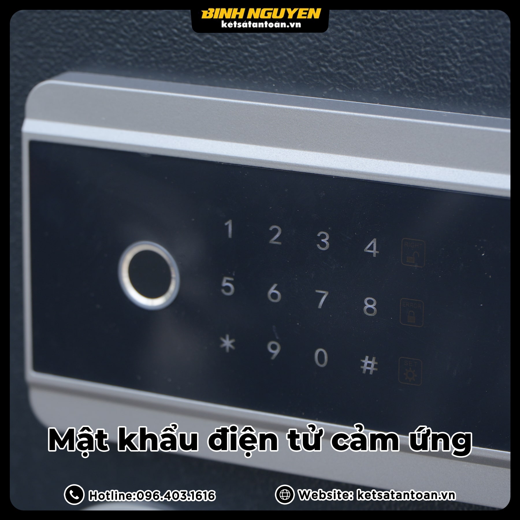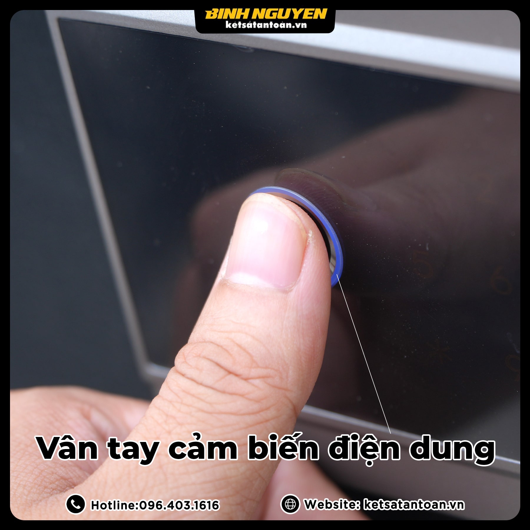 Mở khóa vân tay điện dung siêu nhạy 0.5 giây: Ứng dụng công nghệ cảm biến vân tay điện dung thế hệ mới, nhận diện nhanh chỉ trong 0.5 giây – chính xác ngay cả khi tay ướt, trầy nhẹ hoặc trong điều kiện ánh sáng yếu. Một chạm mở két – nhanh, an toàn và hiện đại.