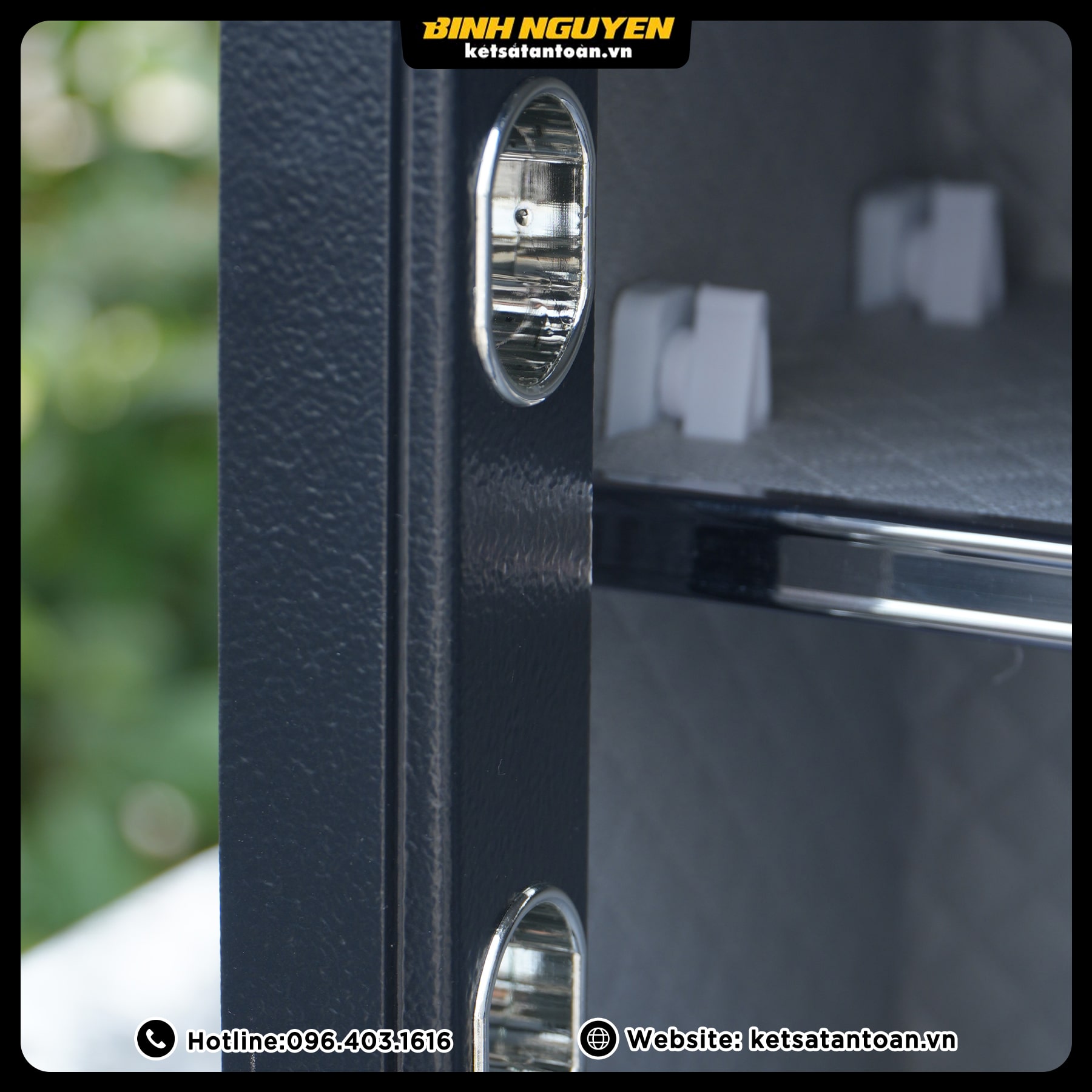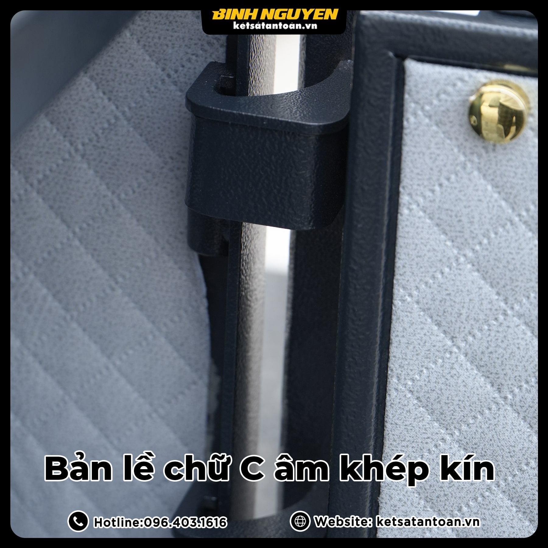 2 Bản lề âm chữ C khép kín: Giấu sâu vào thân két, tăng độ thẩm mỹ và giảm thiểu nguy cơ bị cạy phá từ bên ngoài, tạo nên tổng thể liền khối, chắc chắn.