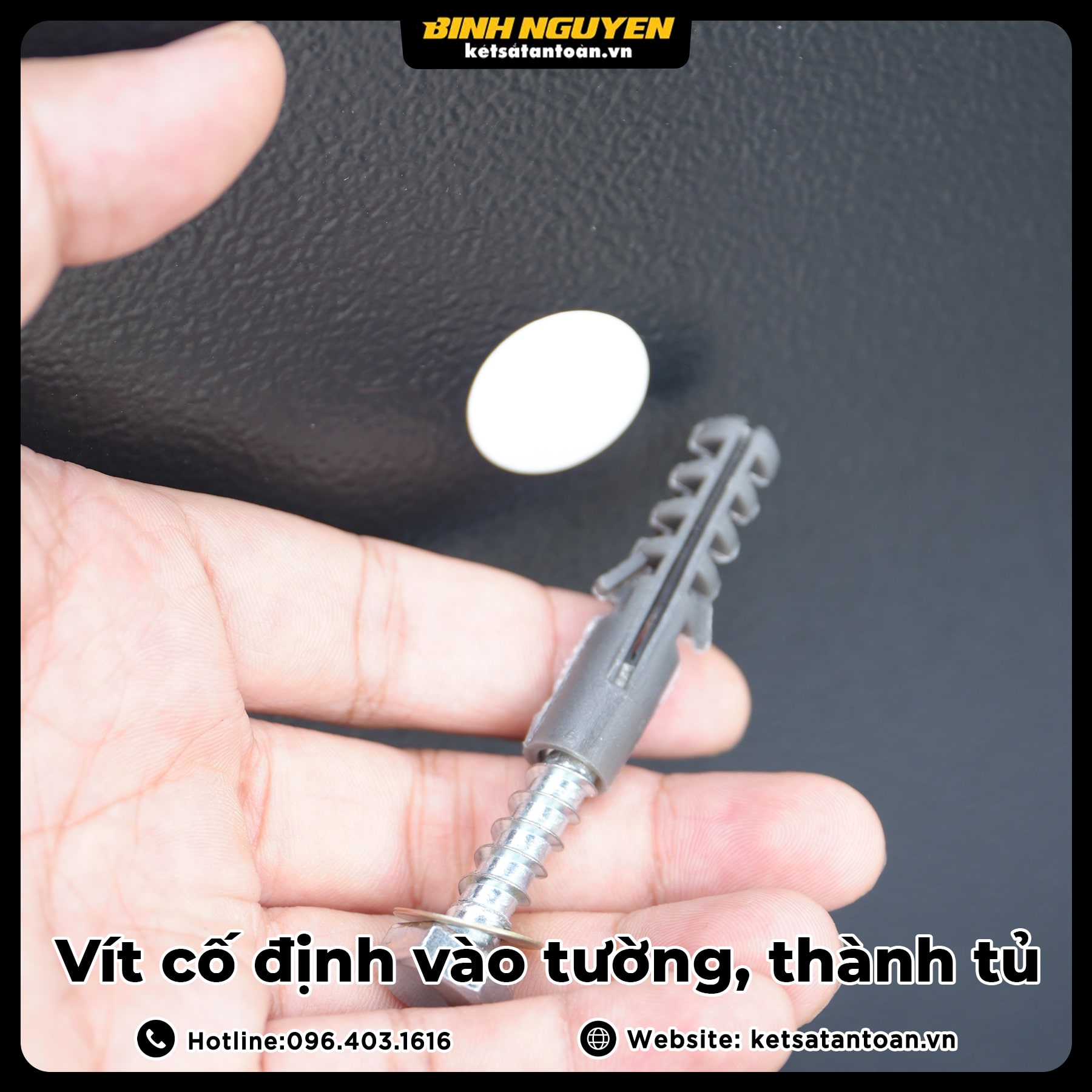 01 Bộ vít nở và ốc cố định két sắt – cho phép bắt chặt két vào tường hoặc thành tủ, ngăn bê trộm, gia tăng độ an toàn tuyệt đối.