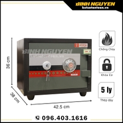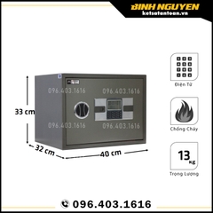 - Kích thước bên ngoài két sắt: Cao 40cm x Rộng 42cm x Sâu 36cm