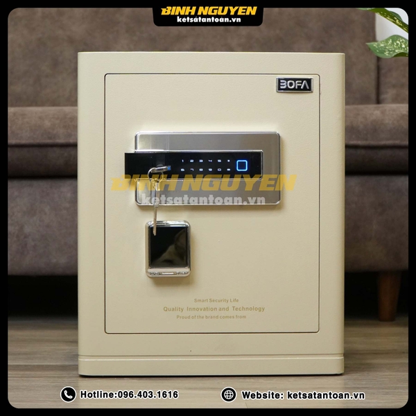 Két sắt Bofa FDX-A1/D-445 có thiết kế tối giản nhưng vô cùng sang trọng với lớp sơn nano tĩnh điện màu vàng đồng nhạt. Sản phẩm không chỉ là một thiết bị bảo mật mà còn là vật dụng trang trí, mang lại sự đẳng cấp cho không gian của bạn.