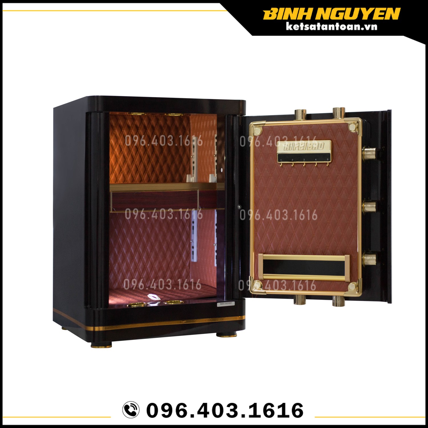 - Nội thât bên trong két được bọc da cao cấp tạo điểm nhất sang trọng cũng như bao bọc các vật dụng quý giá của bạn