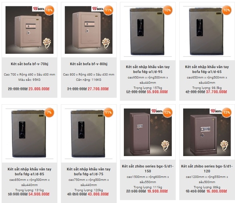 Chúng được chia thành nhiều chủng loại, kích thước và kiểu dáng khác nhau, bao gồm két sắt mini, két sắt điện tử, két sắt vân tay, két sắt loại to, két sắt cỡ lớn. Do đó, với mỗi loại két sắt khác nhau sẽ có giá bán khác nhau, thông thường dao động từ 3,5 triệu đối với két sắt mini và vài chục triệu với dòng két sắt cỡ lớn. Đây được đánh giá là mức giá vừa.