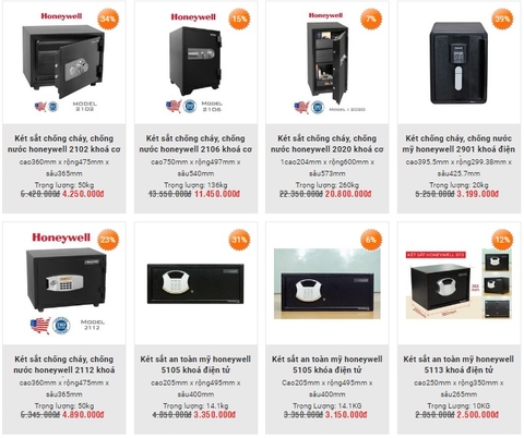 - Két sắt chống cháy, chống nước honeywell 2101 khoá cơ: 3.850.000