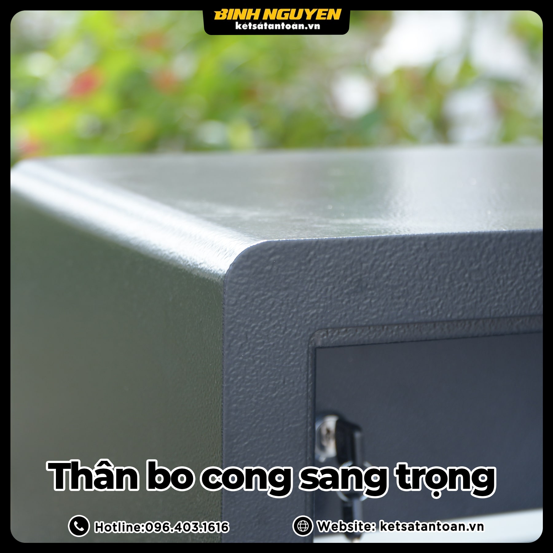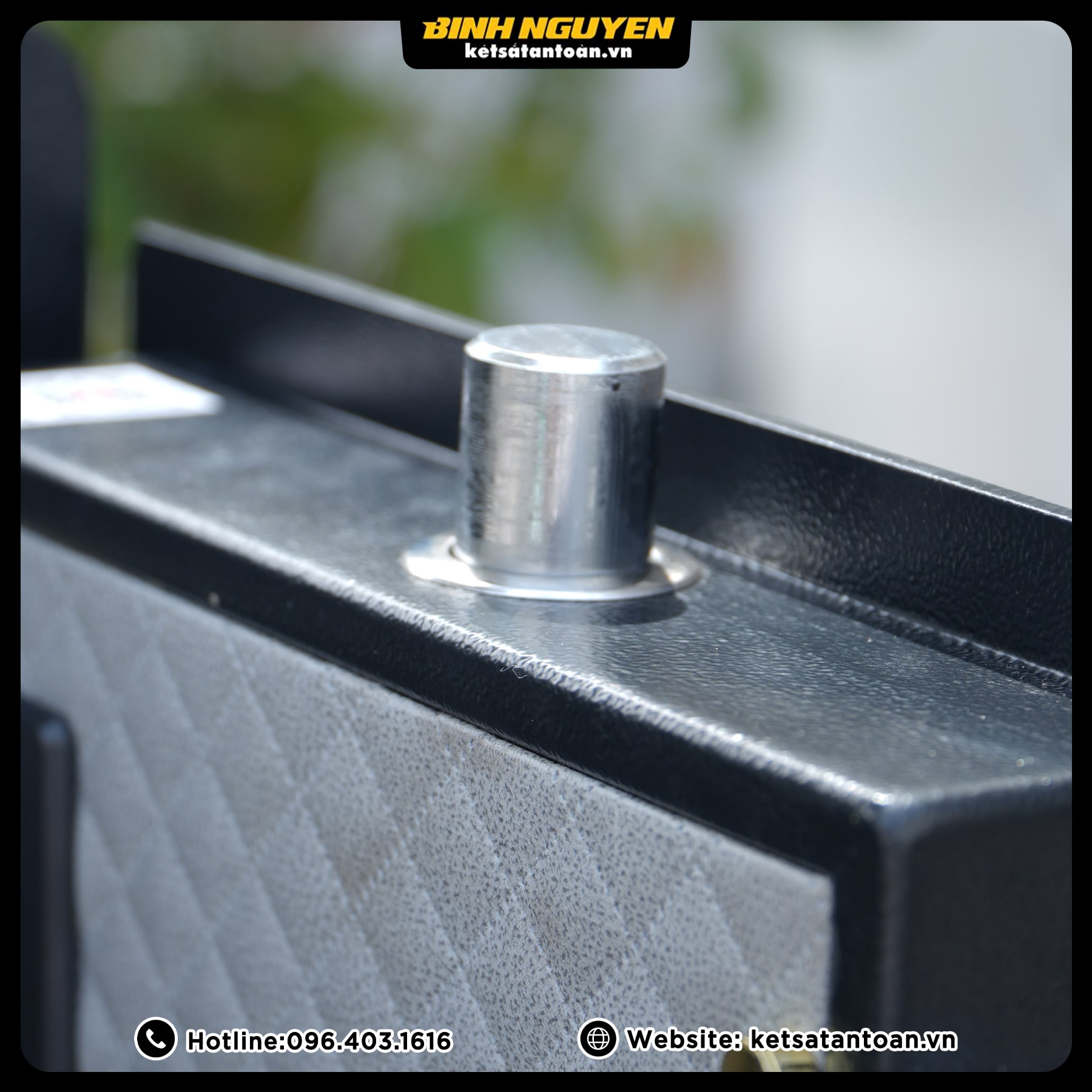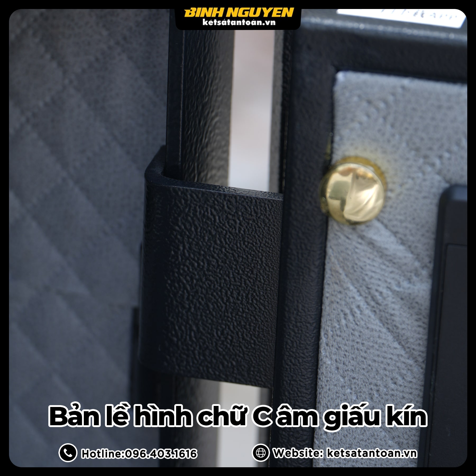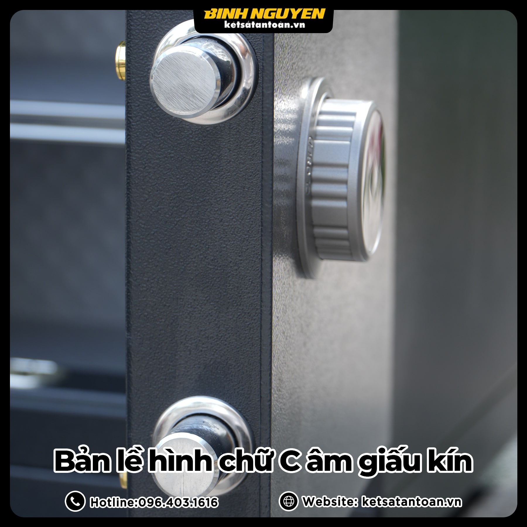 • Bản lề chữ C âm giấu kín: Nằm sâu trong thân két, không thể nhìn – không thể cạy – không thể cắt. → Bí mật cấu tạo giúp tăng bảo mật lên gấp nhiều lần.