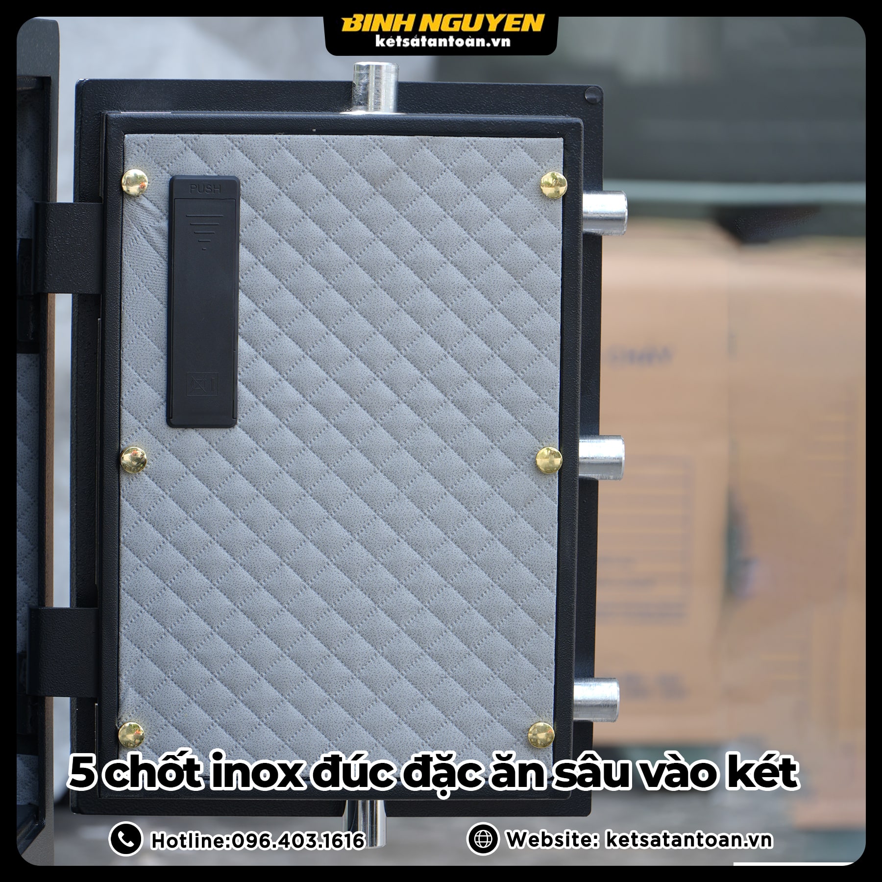 • Hệ thống 5 chốt inox φ25mm đúc đặc: Chốt to – dày – ăn sâu vào thân két. → Càng cố phá, két càng giữ chặt hơn.