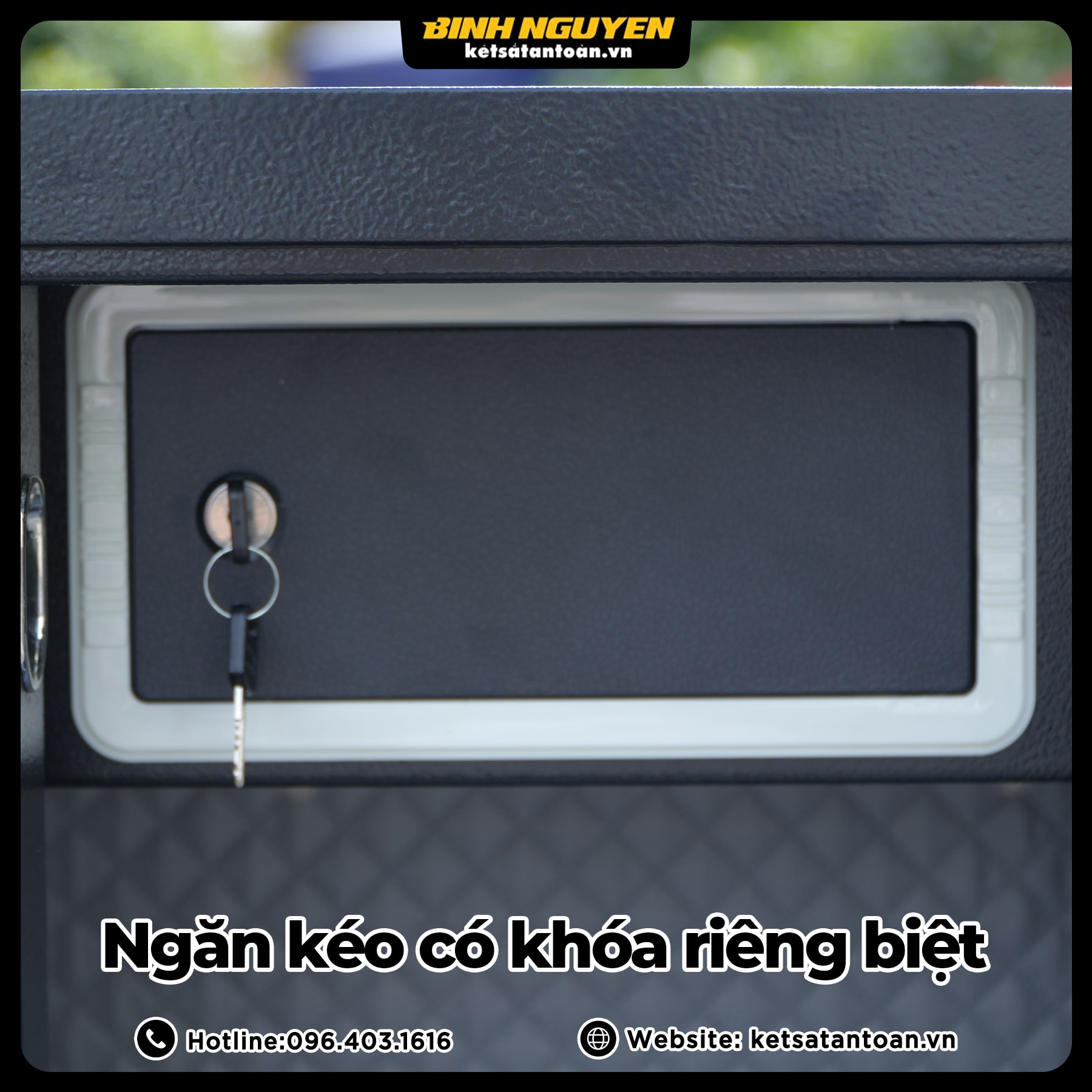 • Ngăn kéo có khóa riêng biệt: Tách biệt tài sản quan trọng hơn. → Hai lớp bảo vệ cho những món đồ “tối mật”.