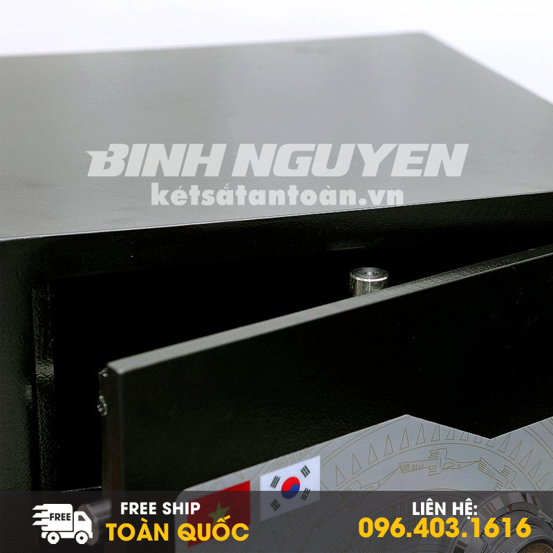 - Toàn bộ thân két đều được làm từ 2 lớp thép dày chịu lực tốt khi bị đập phá, lớp bột chống cháy công nghệ Hàn Quốc an toàn.