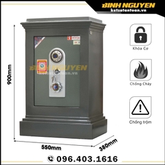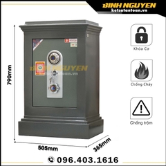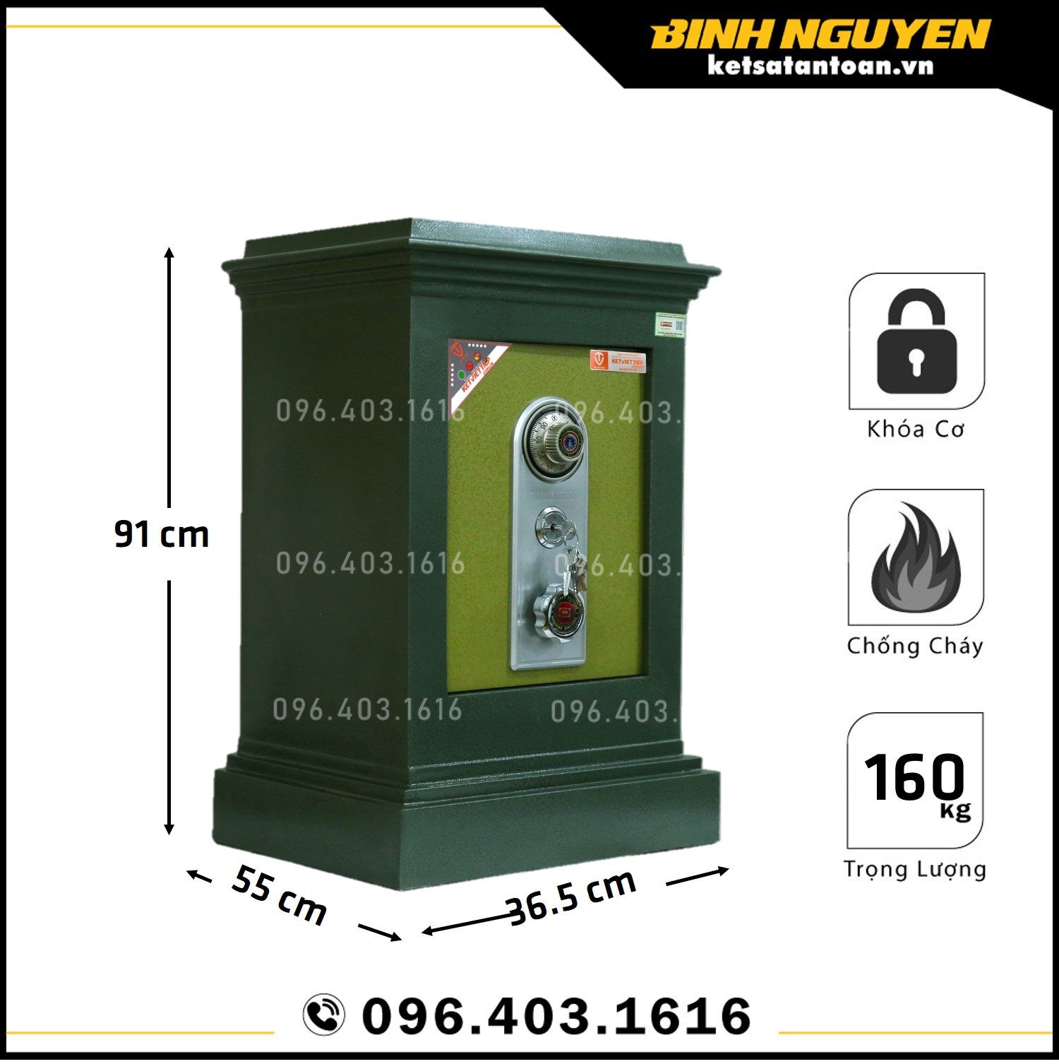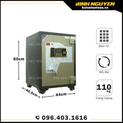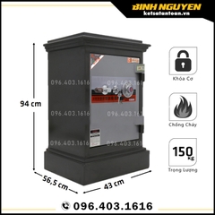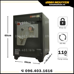 Kích thước ngoài: 91x55x36cm, Trọng lượng: 160kg, Kích thước trong: 58*40*29cm, Khóa cơ, Chống cháy, Đúc đặc |