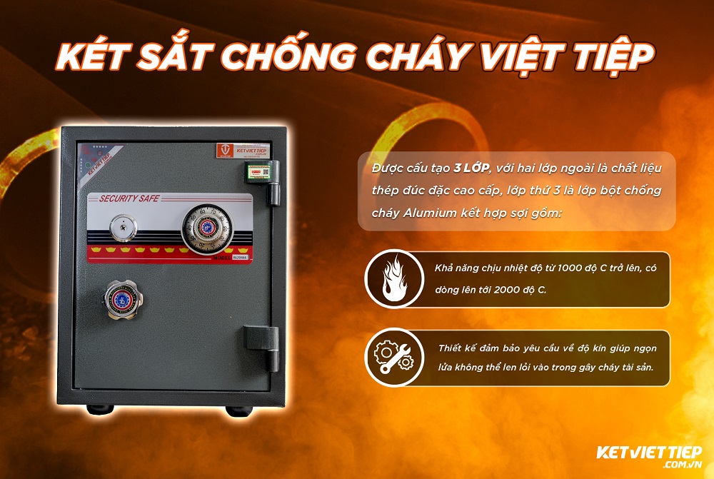 Việt Tiệp tự hào với dòng két sắt siêu cường chống cháy cực kì vượt trội so với các thương hiệu két sắt khác