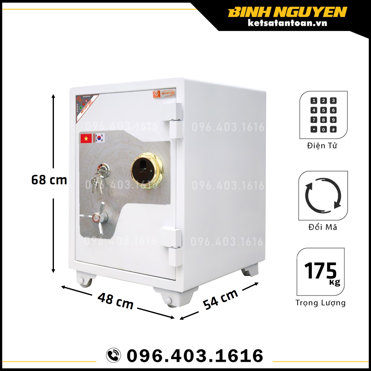 - Kích thước két sắt việt tiệp ngoài: Cao 680 x Rộng 480 x Sâu 540 (mm).