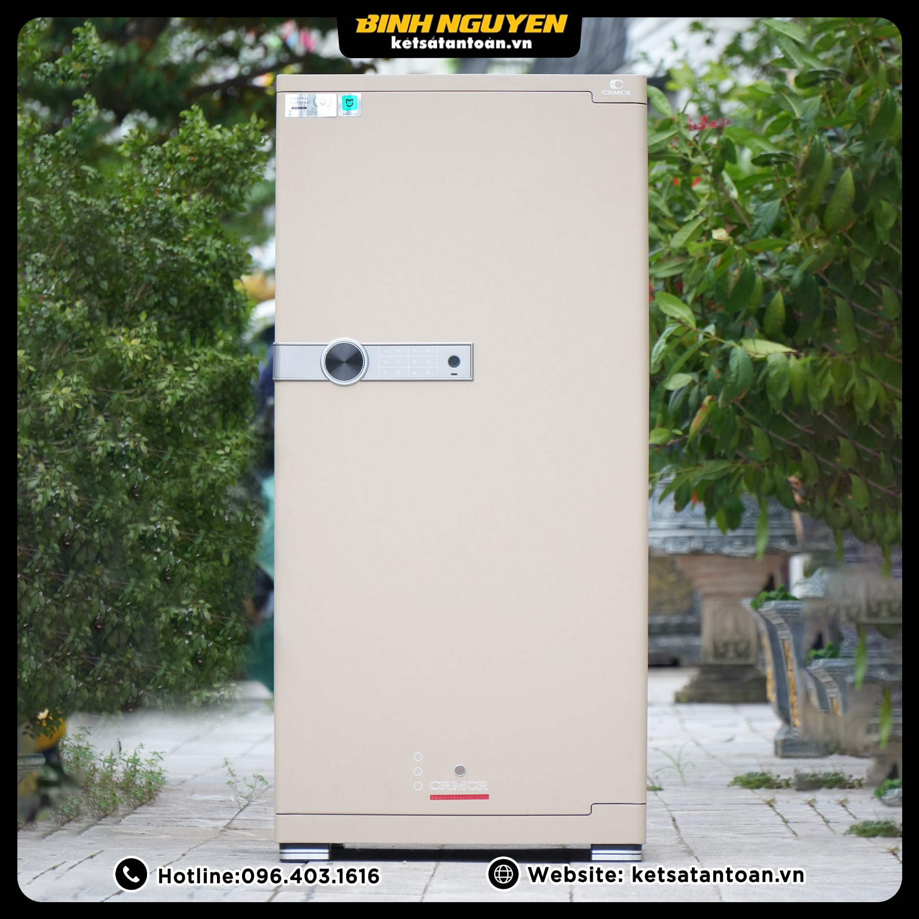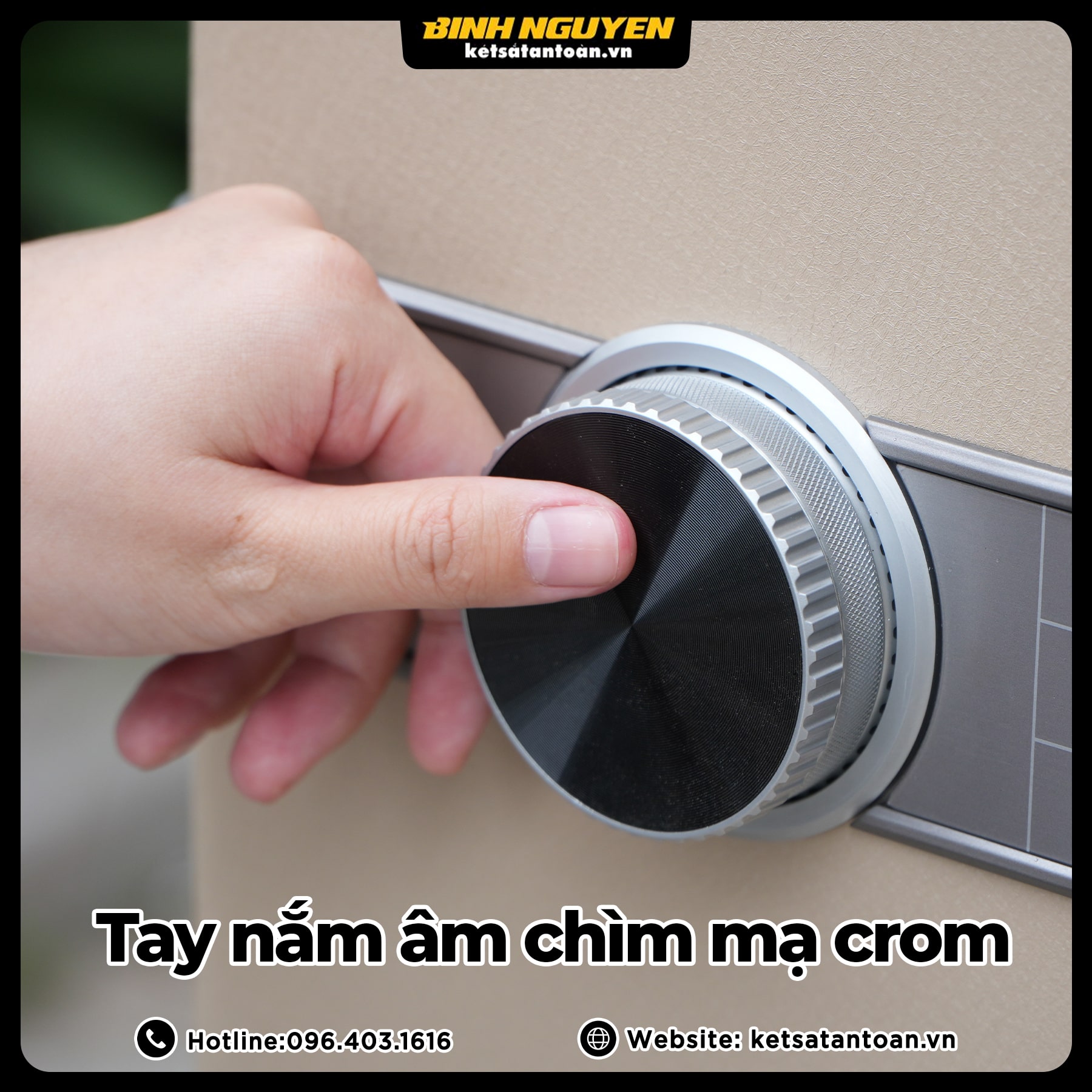 Thân thép Q345 nguyên khối – chống cạy phá mạnh hơn két thường nhiều lần: Chất liệu vi-carbon cường lực, đúc liền khối, kết hợp chốt thép đặc 3.2 cm ăn sâu 3.8 cm giúp két giữ thế khóa chắc tuyệt đối, không bị uốn, không bị bẩy đòn cạy.