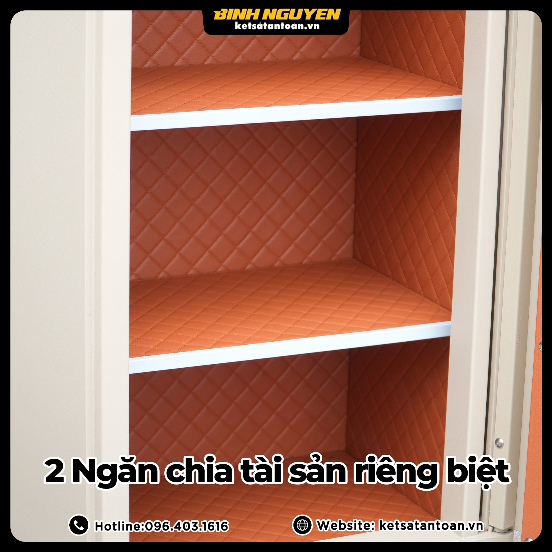 Lớp chống cháy đa tầng bên trong thân két: Sử dụng vật liệu thạch anh + silicat chịu nhiệt cao, giúp bảo vệ giấy tờ – tài sản trong môi trường nhiệt độ lớn.
