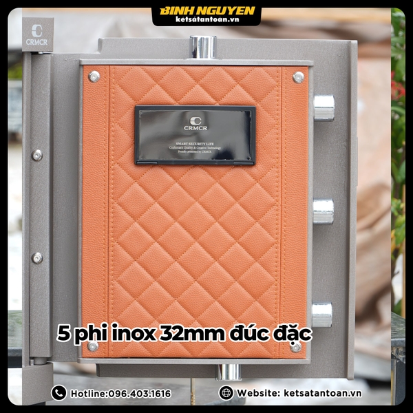 CRMCR 45JB được trang bị 5 chốt thép đặc inox đường kính 32mm, ăn sâu trực tiếp vào khung thân két. Khi khóa, toàn bộ hệ chốt liên kết chặt chẽ giữa cánh cửa và thân két, tạo thành một khối thống nhất cực kỳ vững chắc, ngăn chặn các rủi ro khoan cắt phá khóa từ phía cánh cửa.
