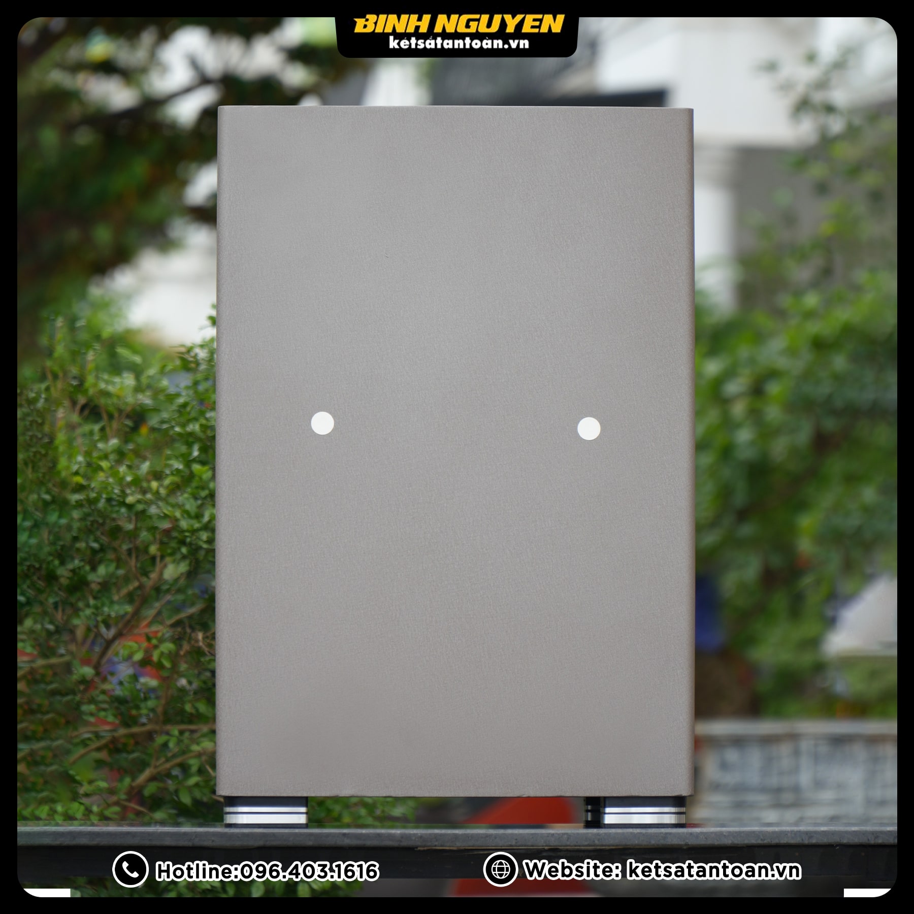 Cánh cửa két: Dày 8mm, gấp 8 lần so với két thường; thiết kế cong liền khối ôm sát thân két đóng kín tuyệt đối. → Tăng cường khả năng chống cạy, chống đòn bẩy; loại bỏ hoàn toàn khe hở – điểm mở mà kẻ gian thường lợi dụng.