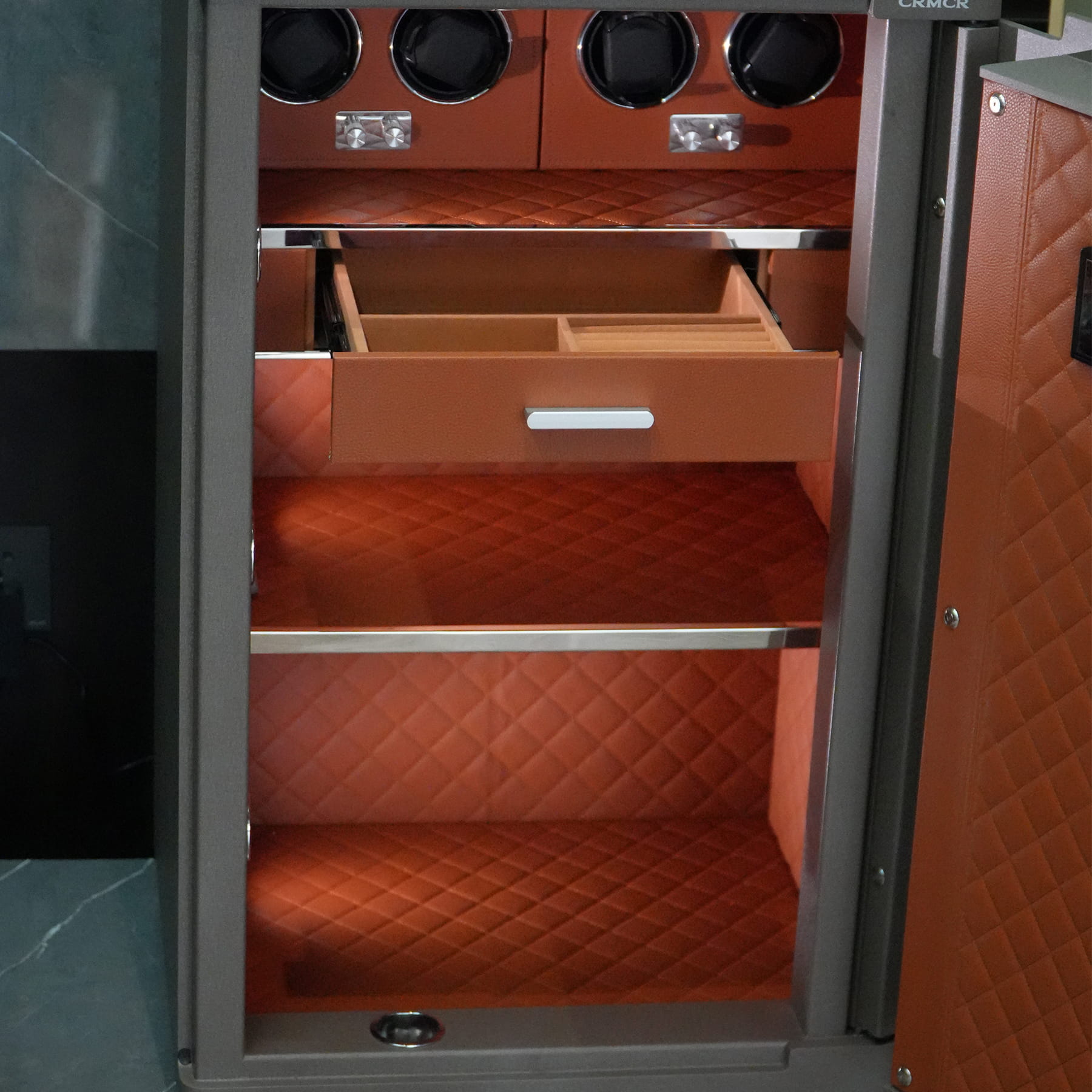 Bảo vệ toàn diện trong môi trường an ninh cao: Đồng hồ vừa được bảo quản theo đúng chuẩn kỹ thuật của watch winder, vừa nằm trong két sắt chống trộm – chống phá – kiểm soát truy cập, đảm bảo an toàn tuyệt đối cho tài sản giá trị.
